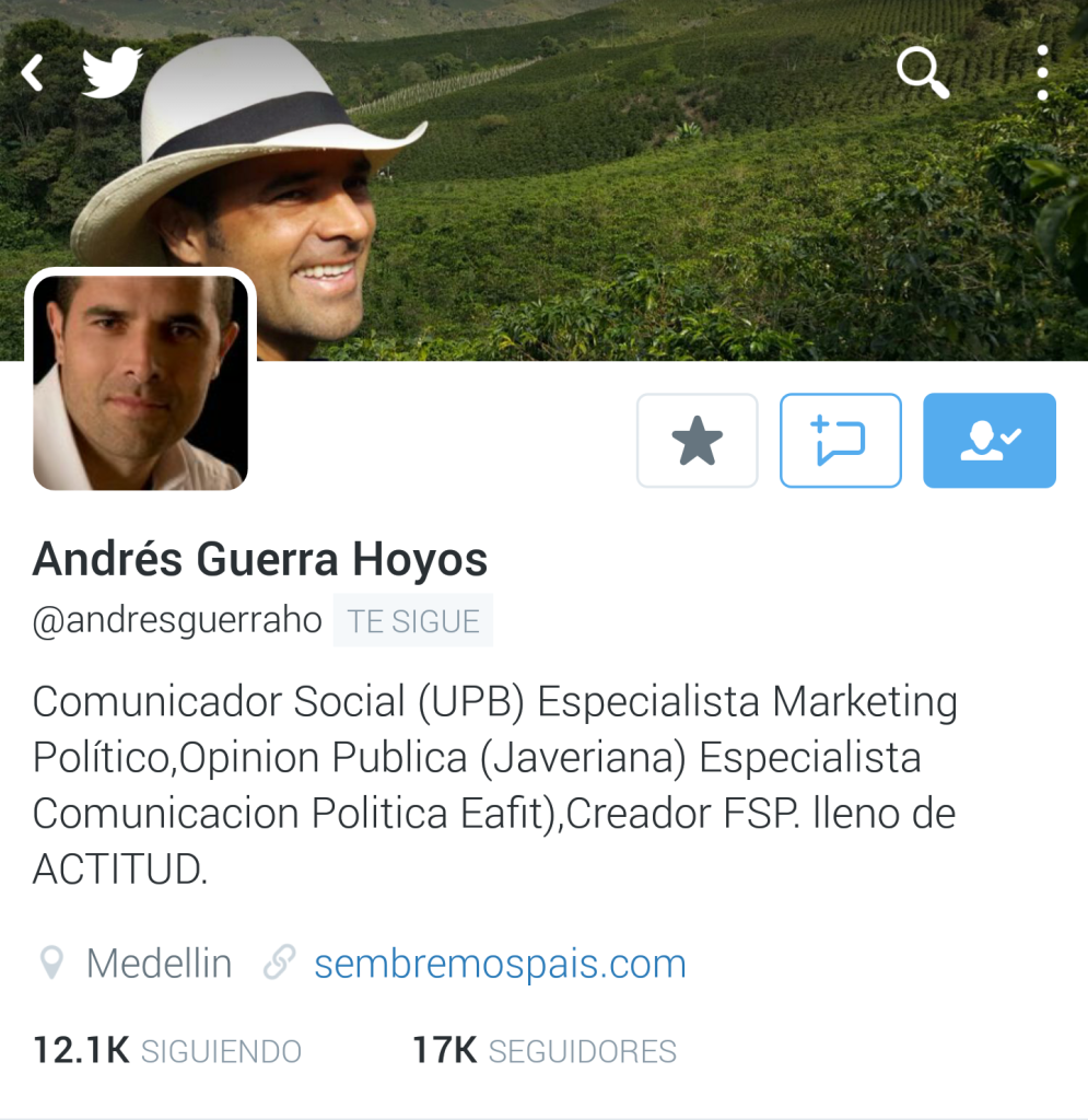 Andrés Guerra Hoyos @AndresGuerraHo +/- 17.000 seguidores