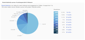Si las redes sociales son el reflejo de lo que está sucediendo en el mundo real de los electores, entonces la campaña de Federico Restrepo debe preocuparse por la lentitud con la que está avanzando su comunicación, en unas elecciones que están a la vuelta de dos meses. Sus seguidores puntúan bastante reales, lo cual es habitual en una cuenta de este nivel pero tiene algo extraordinario y es que muchos de éstos tienen muy buen puntaje o autoridad social. Es decir, interactúan bastante y tienen un buen número de seguidores, lo que hace aún más curiosa la falta de crecimiento de la cuenta del candidato de Compromiso por Antioquia.