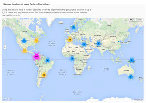 De todos los candidatos a la Gobernación de Antioquia, Luis Pérez es el candidato con más seguidores y también el que posee más followers en distintos sitios del planeta. Esto puede ser sospechoso en ocasiones, pero debe reconocerse que a medida que aumentan los seguidores, aumentan las probabilidades de ser conocido en diferentes lugares. Es por eso que deben evaluarse con detenimiento el número de seguidores que el candidato tiene en cada región del mundo. Por lo general los más fiables provienen de su zona de influencia y los menos fiables de las zonas más distantes, en especial el continente asiático, donde existen cientos de empresas dedicadas a vender seguidores por bultos. Éste no parece ser el caso.