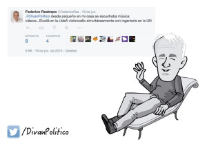 Este fue Federico Restrepo, próximo candidato a la Gobernación de Antioquia. Además de violonchelista e ingeniero, ha sido Secretario de Planeación en la alcaldía de Fajardo y Gerente de EPM en la de Salazar. Estuvo contándonos sobre su infancia, su familia y las enseñanzas que le dejaron sus padres. Para leer la sesión completa, haga clic en el tuit con el que comenzamos:
